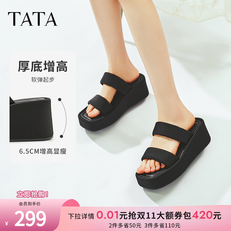 新款 松糕外穿坡跟凉拖2025夏季 CT401BT5 女鞋 TATA他她休闲厚底拖鞋