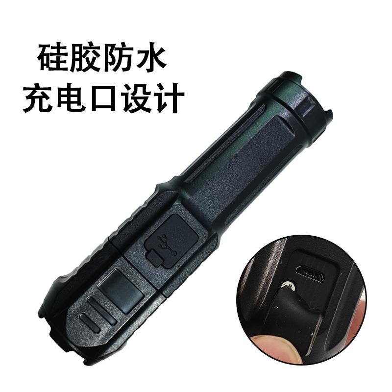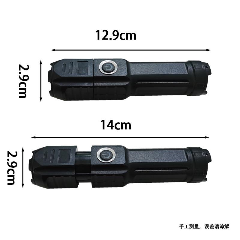 跨境led伸缩变焦强光手电筒USB充电小巧便携聚光远射便携家用手电