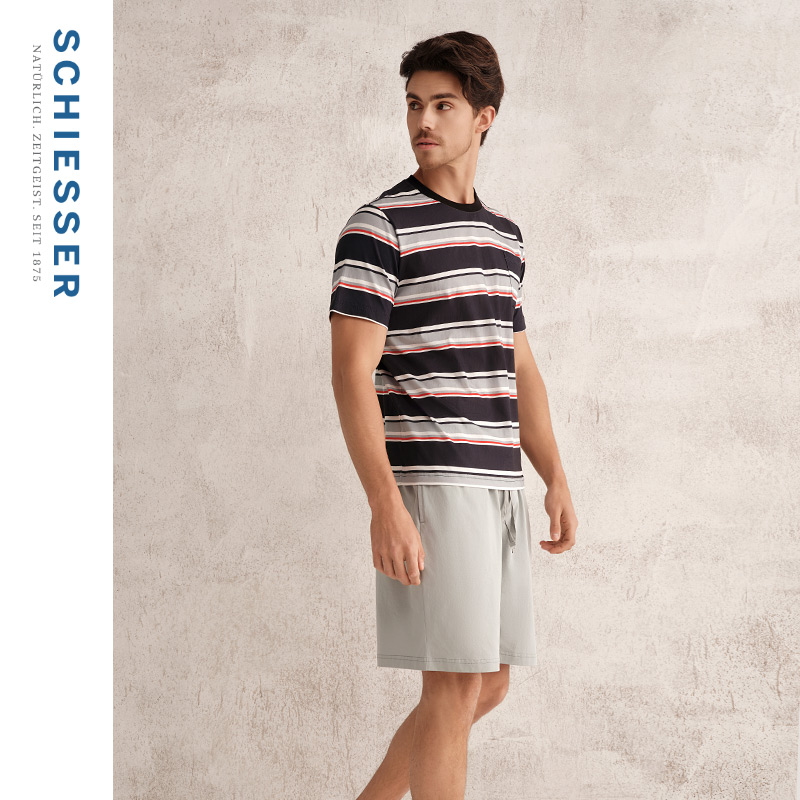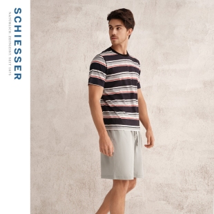 睡衣家居服套装 SCHIESSER舒雅25年夏季 纯棉条纹圆领大码 男士 新品