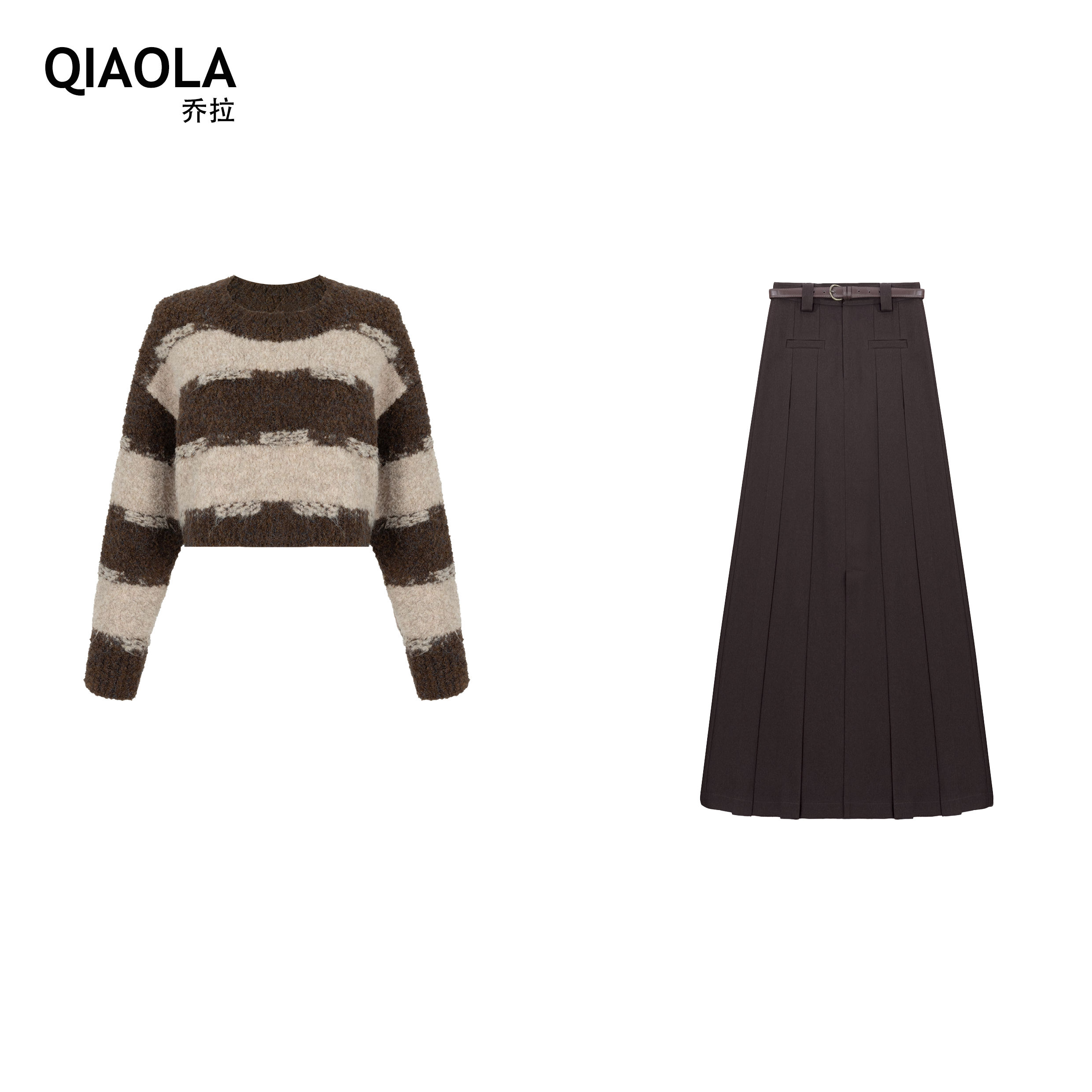 定制条纹圈毛织圆领慵懒轻奢套装 小众设计秋冬款 火柴暖冬 乔拉