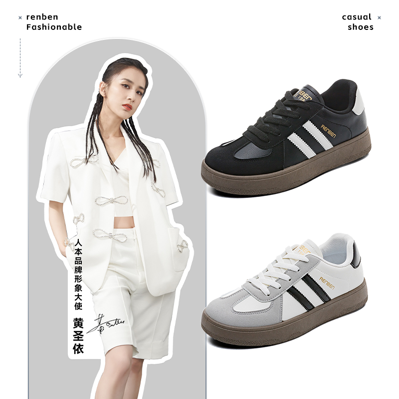 女2025新款 子休闲小众板鞋 秋季 鞋 运动厚底百搭爆款 环球复古德训鞋