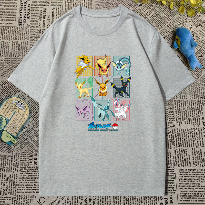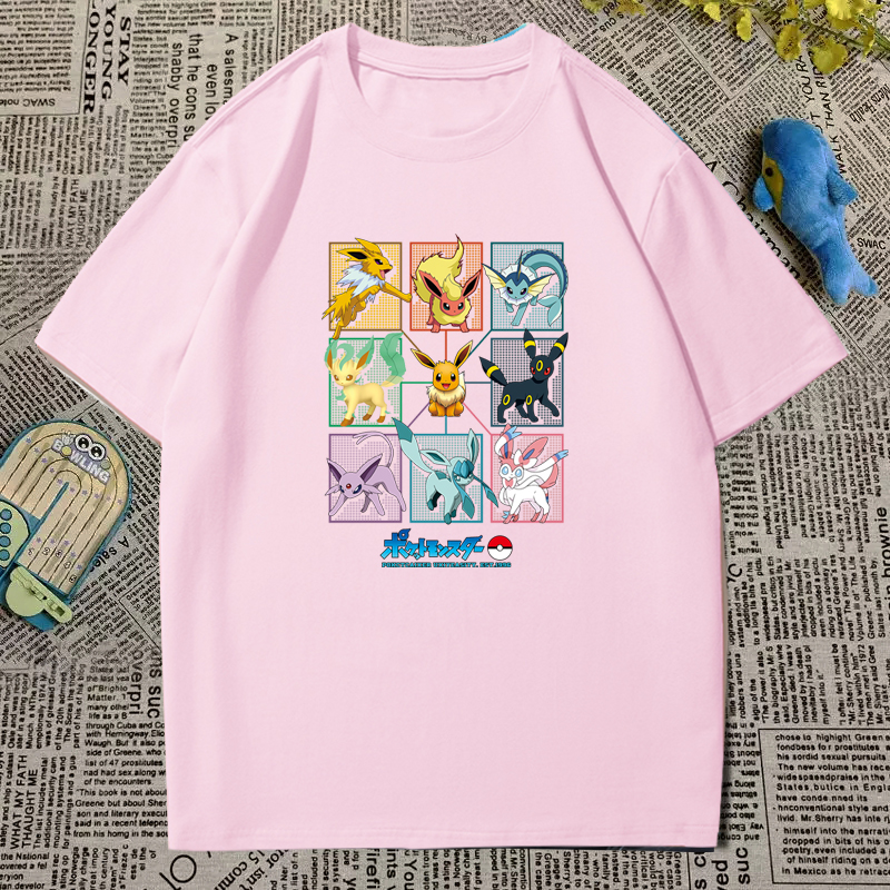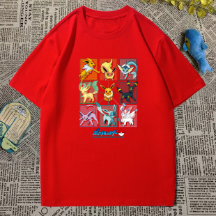 短袖 精灵宝可梦日系动漫童装 大码 伊布进化情侣时尚 t恤 纯棉T恤衫