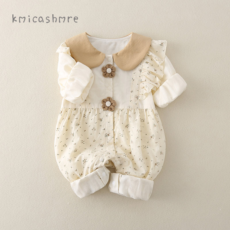 kmi新生婴儿衣服春装 外套女宝宝连体衣春秋外出公主满月百天哈衣