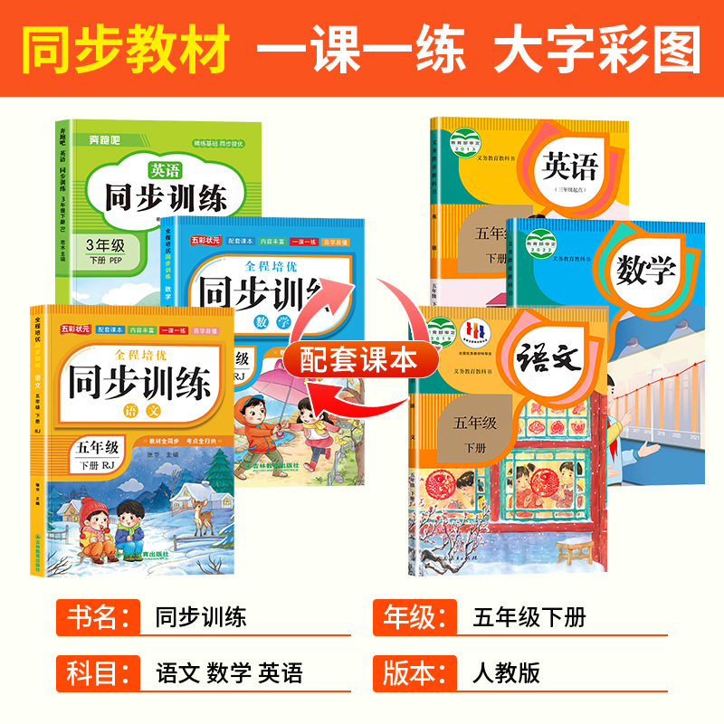 五年级上下册语数英同步训练全套练习册 课课练测试卷 语文数学英语教材同步训练练习题小学课堂一课一练作业本5年级语外部编人教版