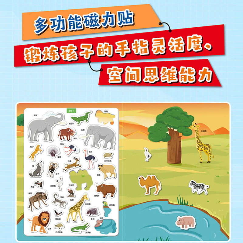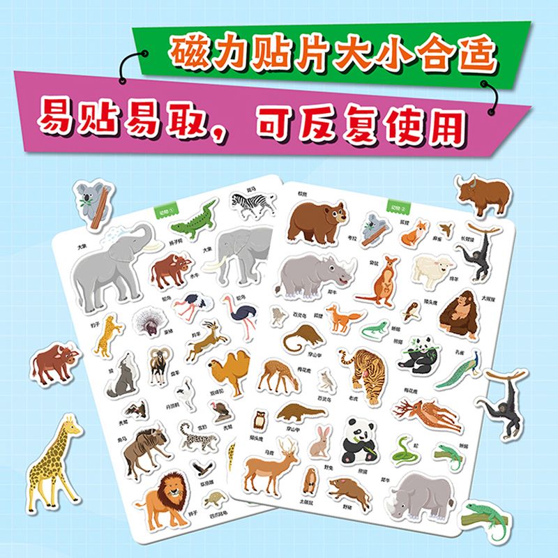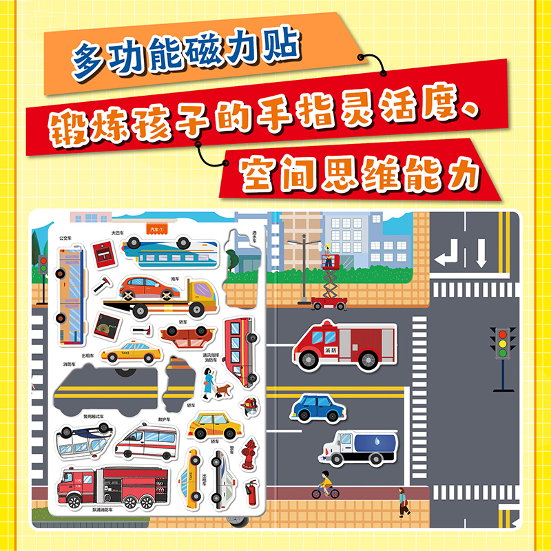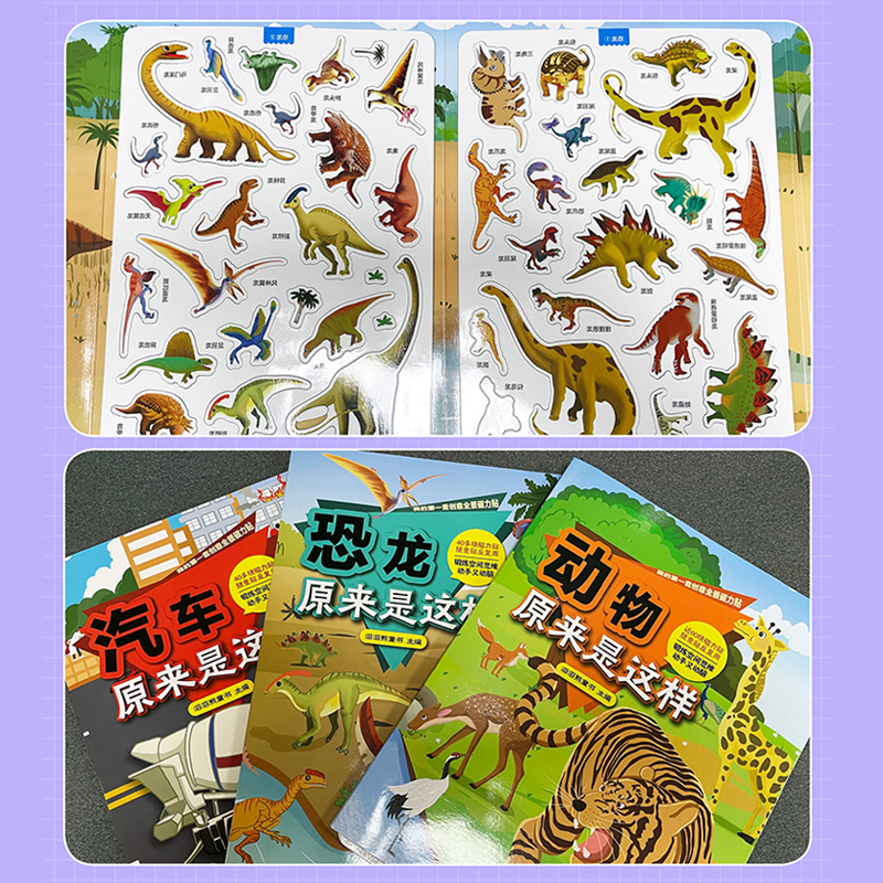 第一套创意全景磁力贴:动物原来是这样 儿童贴纸书粘贴画3 恐龙原来是这样 全3册 6岁专注力训练磁力贴画 汽车原来是这样 我