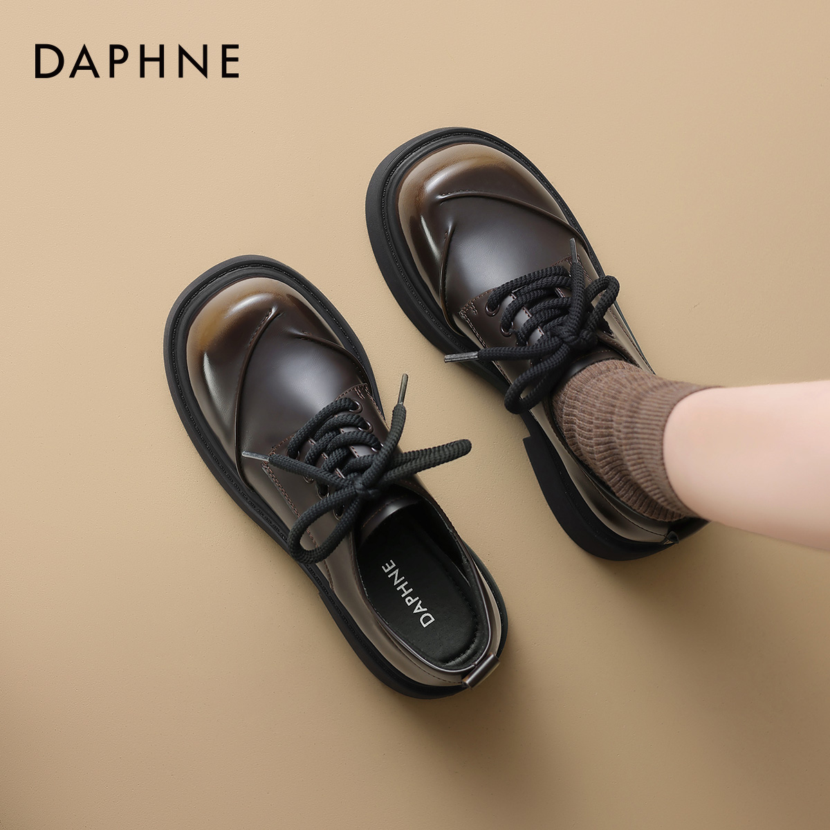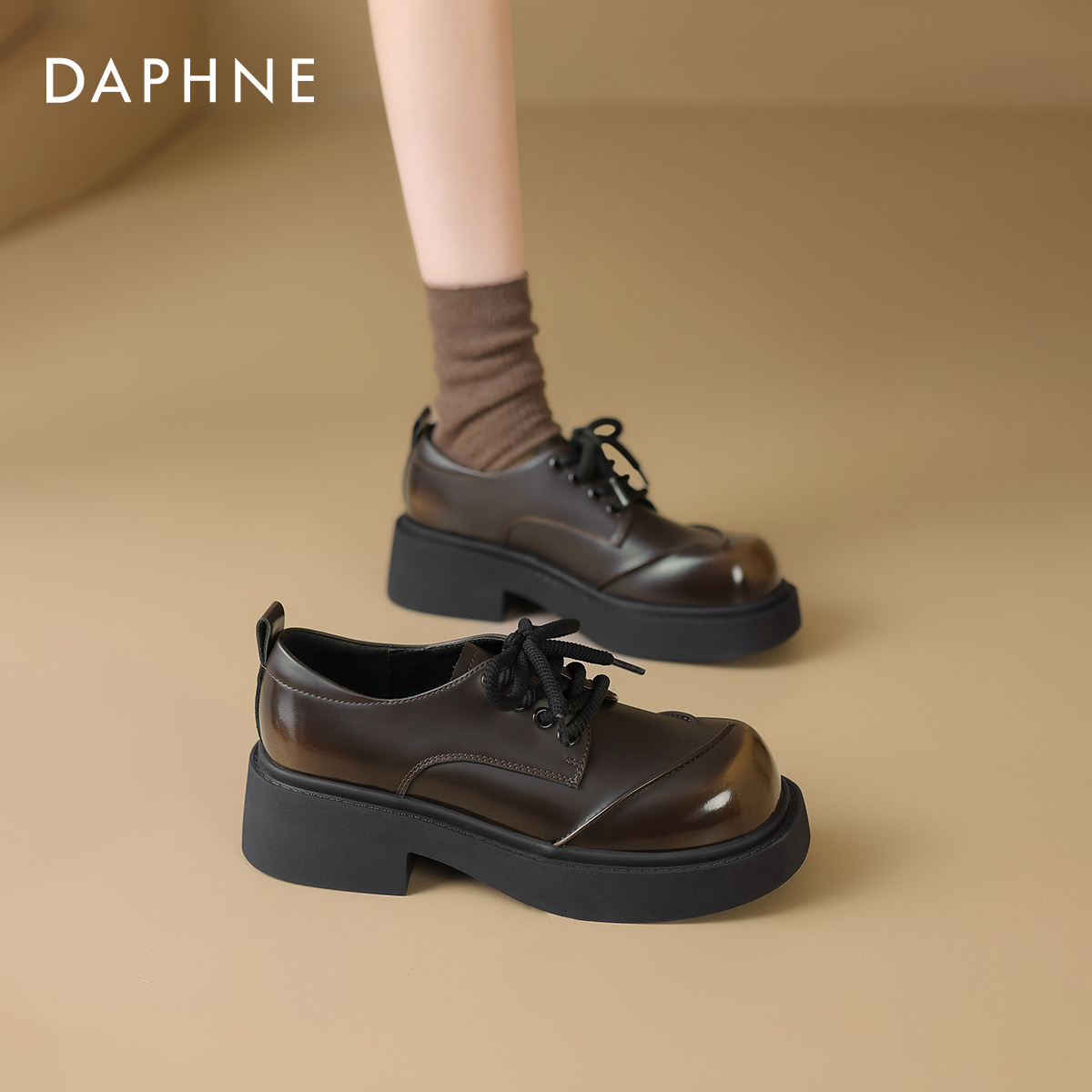 布洛克厚底增高单鞋 达芙妮乐福鞋 女款 英伦风黑色小皮鞋 女2025新款