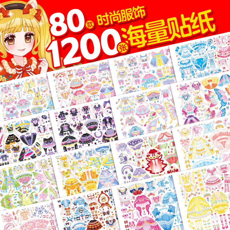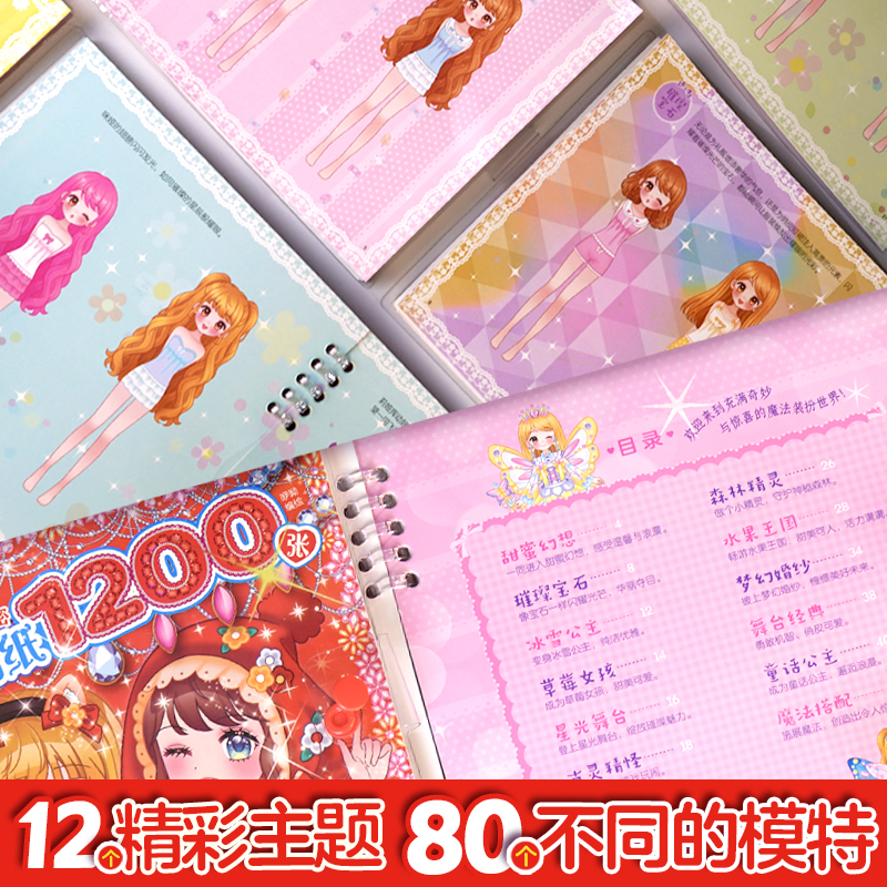 贴纸书儿童创意穿搭幼儿园3 魔力双子星咪娅莉娅漂亮 洛丽塔女孩礼物换装 贴纸1200张 6岁手工书女孩礼物绘本 秘密换装