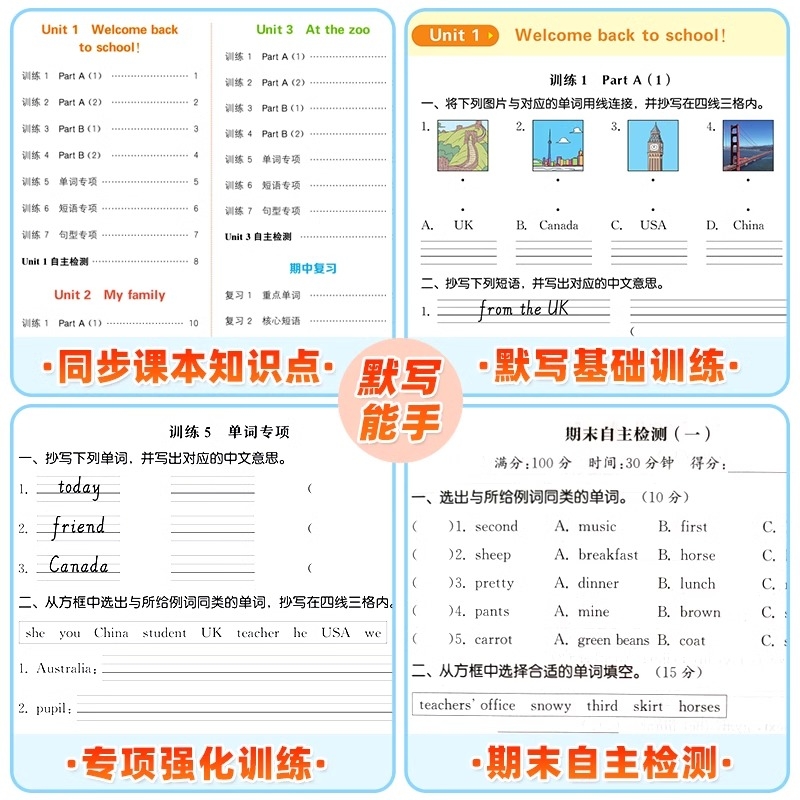 通成学典小学英语默写能手三年级四年级五年级六年级一二下册人教外研教科版 听力能手单词词汇短语句型语篇听力测试专项训练