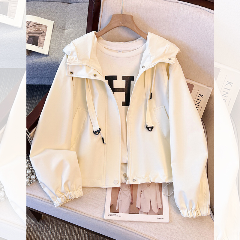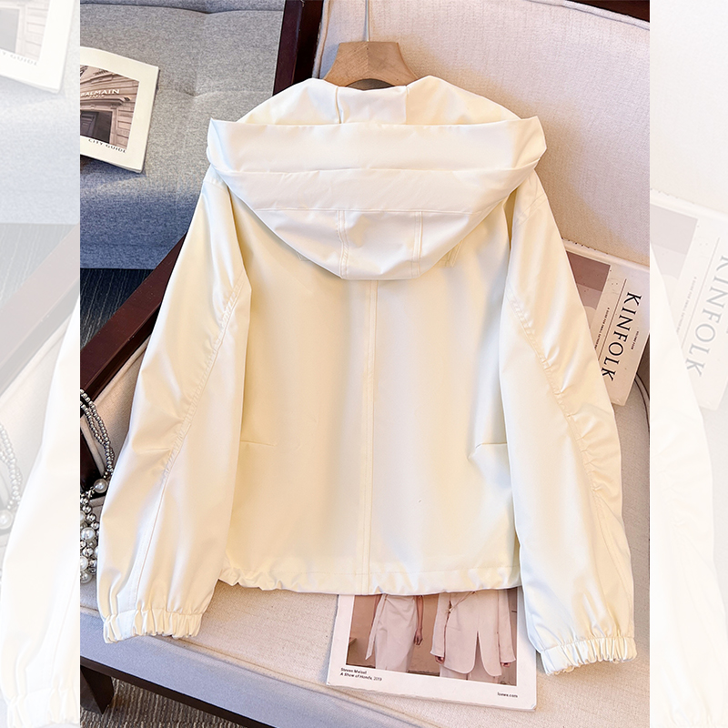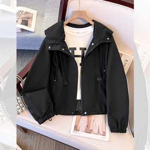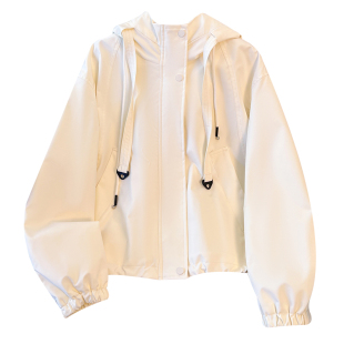 雾霾奶蓝色连帽冲锋棒球服外套女2025超火开春秋新款 休闲百搭夹克