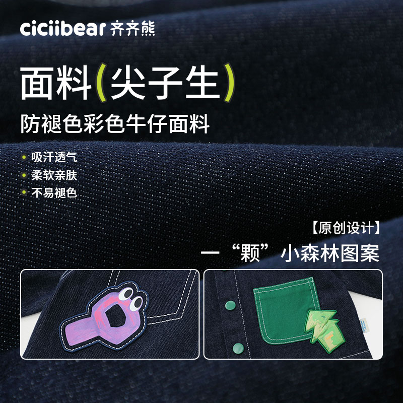 2025新款 齐齐熊宝宝牛仔外套男童春秋装 拼接儿童休闲上衣 防褪色
