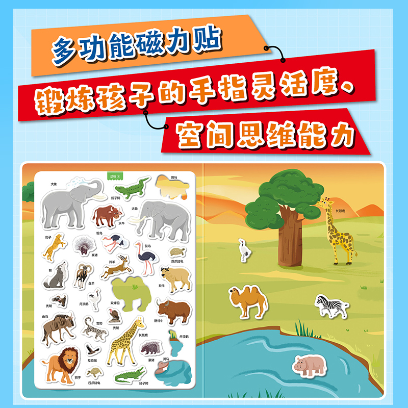 6岁专注力训练磁力贴画书 我 儿童贴纸书粘贴画3 动物原来是这样 宝宝益智启蒙认知早教玩具书 第一套创意全景磁力贴