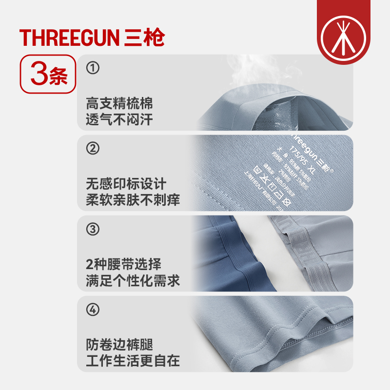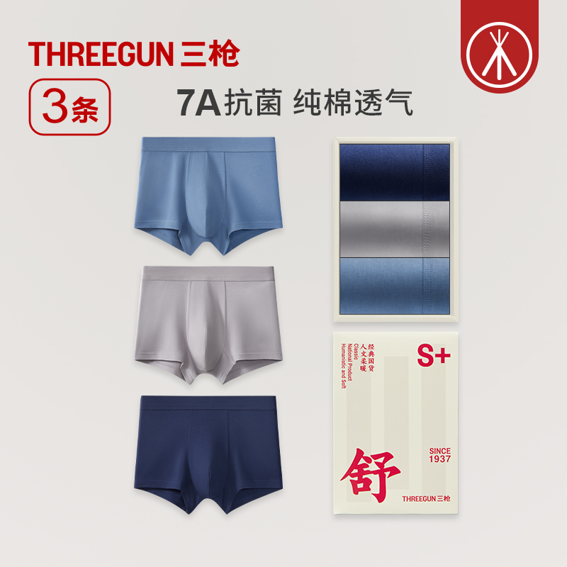 纯棉透气7A抗菌青少年平角裤 内裤 三枪男士 春夏轻薄高弹学生 3条