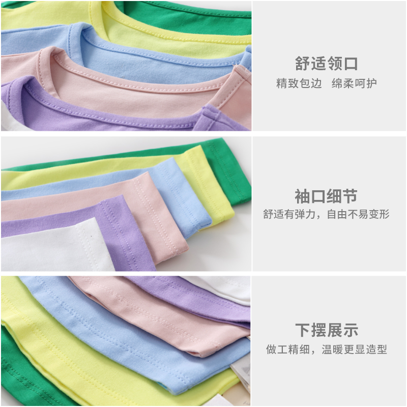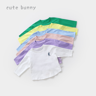 男女童糖果色T恤宝宝圆领宽松纯色打底衫 cutebunny2025春装 新款