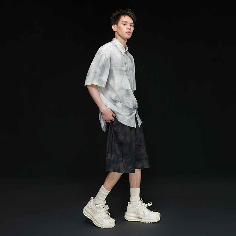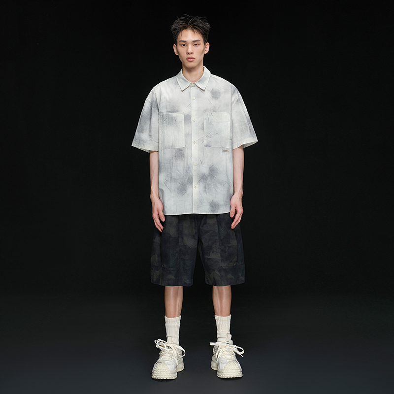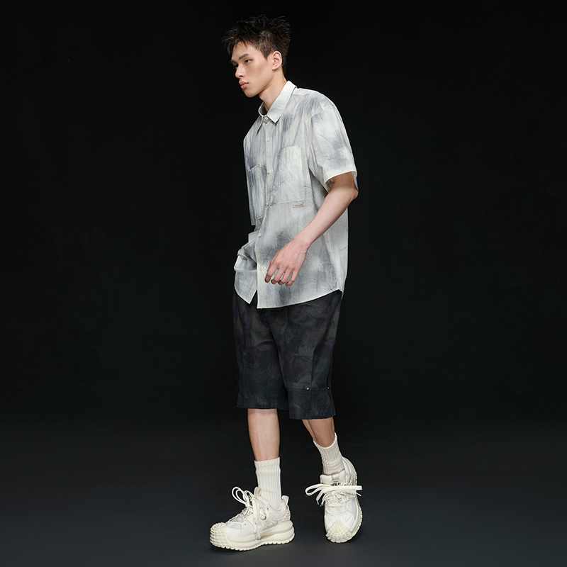 宝相花刺绣口袋链条宽松格子衬衣510038 男长袖 三福2025冬季 衬衫