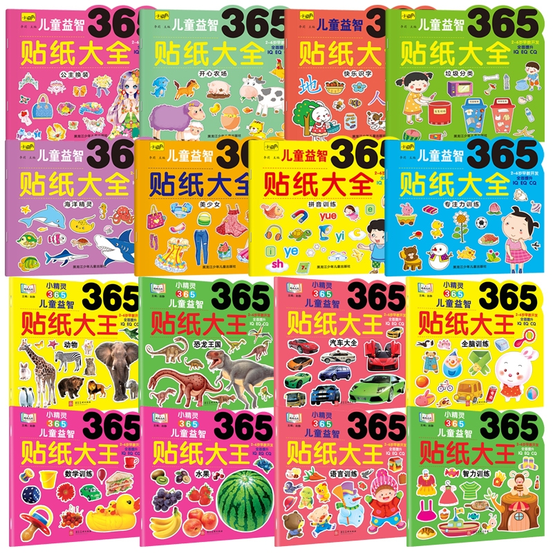 365贴纸大王公主换装 动物恐龙海洋水果汽车数学贴纸书专注力3到6岁幼儿启蒙知识库认知罗辑思维大开本儿童益智3岁以上拼音识字游戏