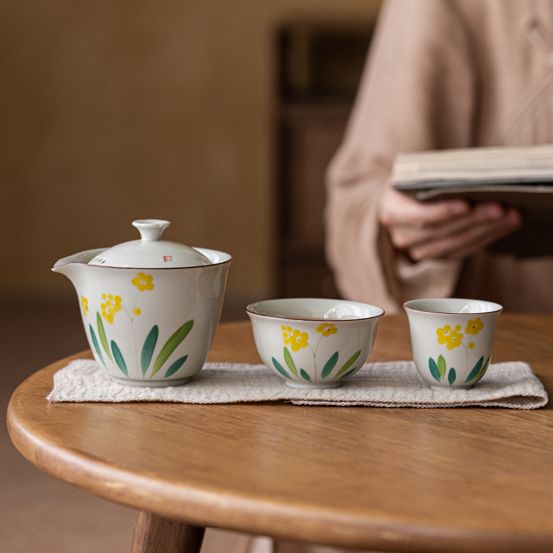 画续草木灰手绘梅花快客杯一壶二杯功夫旅行茶具便携式 收纳包旅游