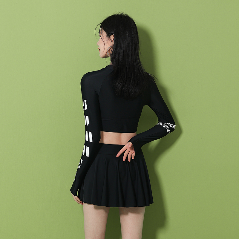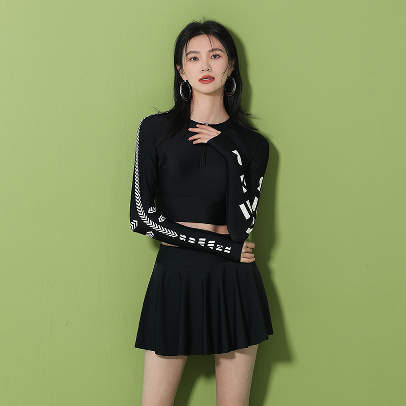 游泳衣 防晒保守显瘦游泳馆专用运动裙式 泡温泉分体泳衣女新款 长袖