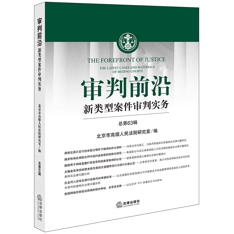 审判前沿 案件审判法律适用实务法律出版 新类型案件审判实务 北京市高级人民法院研究室编 社9787519775957 总第63辑 现货2023新书