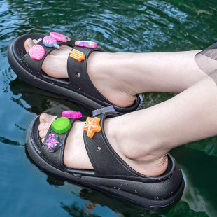 一家三口防滑防臭户外沙滩凉鞋 外穿厚底增高拖鞋 女夏季 森马洞洞鞋