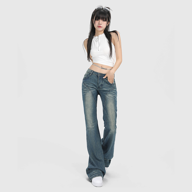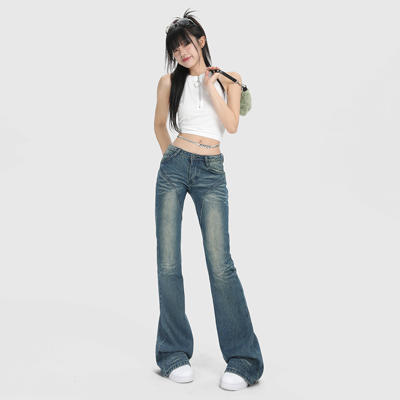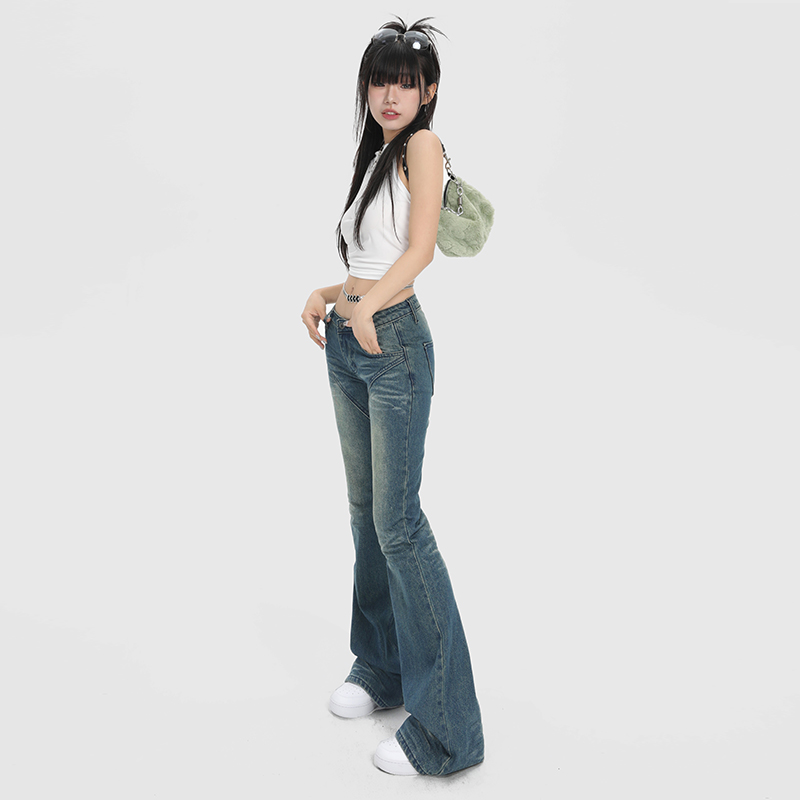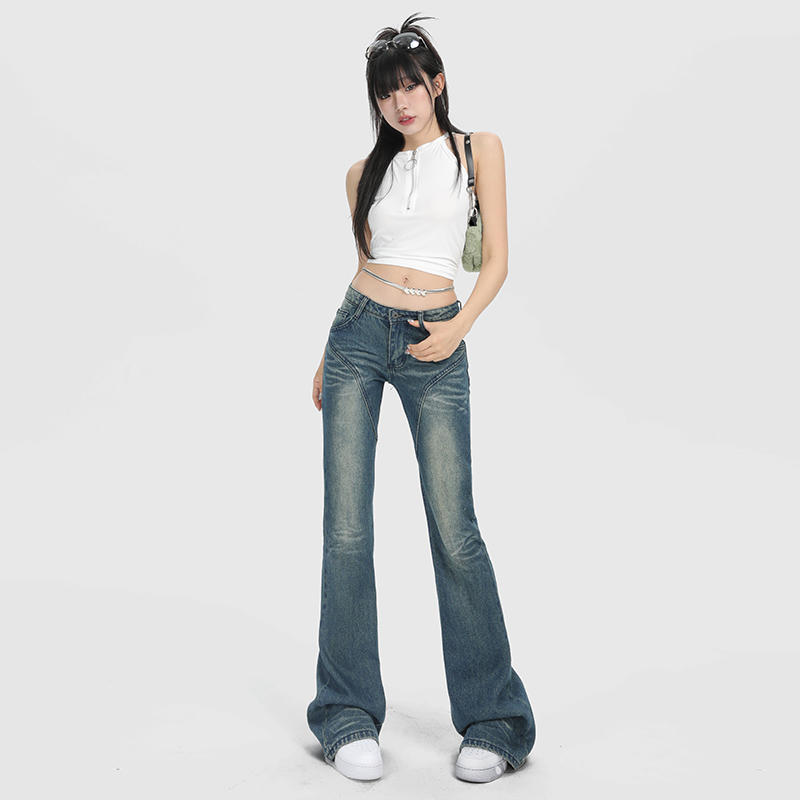 显地裤 VWU低腰微喇叭牛仔裤 复古水洗修身 春秋辣妹美式 女2025新款