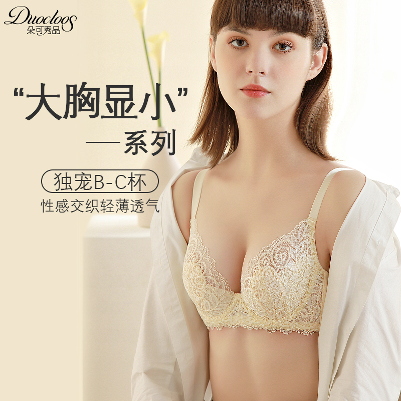 全罩杯防下垂微聚拢胸罩无痕大胸显小文胸 遐内衣女薄款 小清风