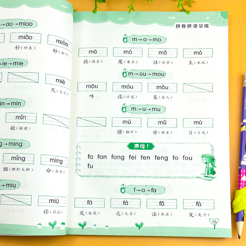汉语拼音拼读专项训练习册幼儿童学前大班学拼音教材字词拼读声调发音练习声母韵母整体认读小学生一年级拼音阅读练习题带汉字声调
