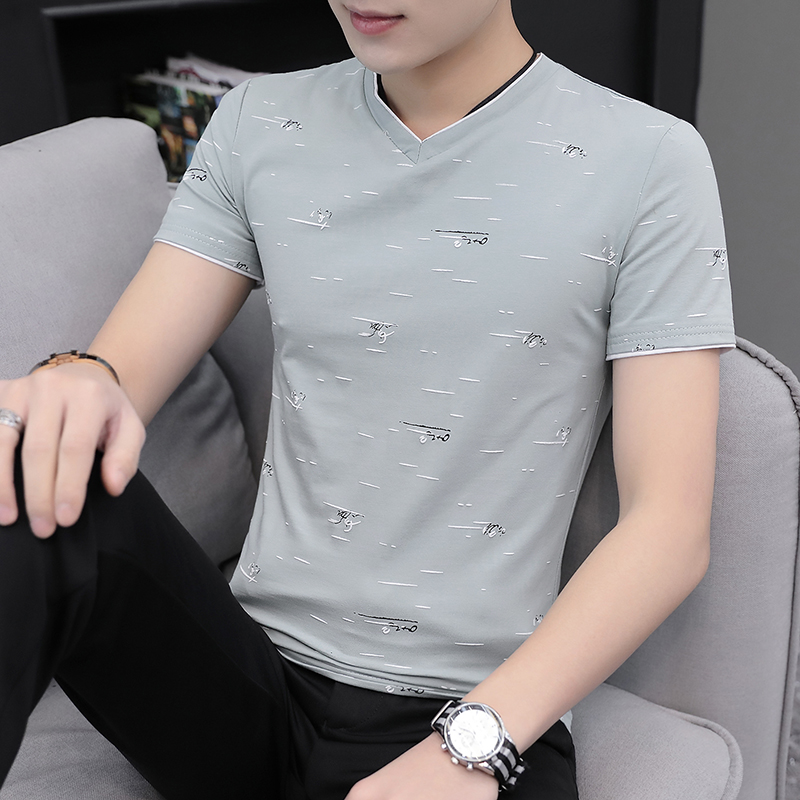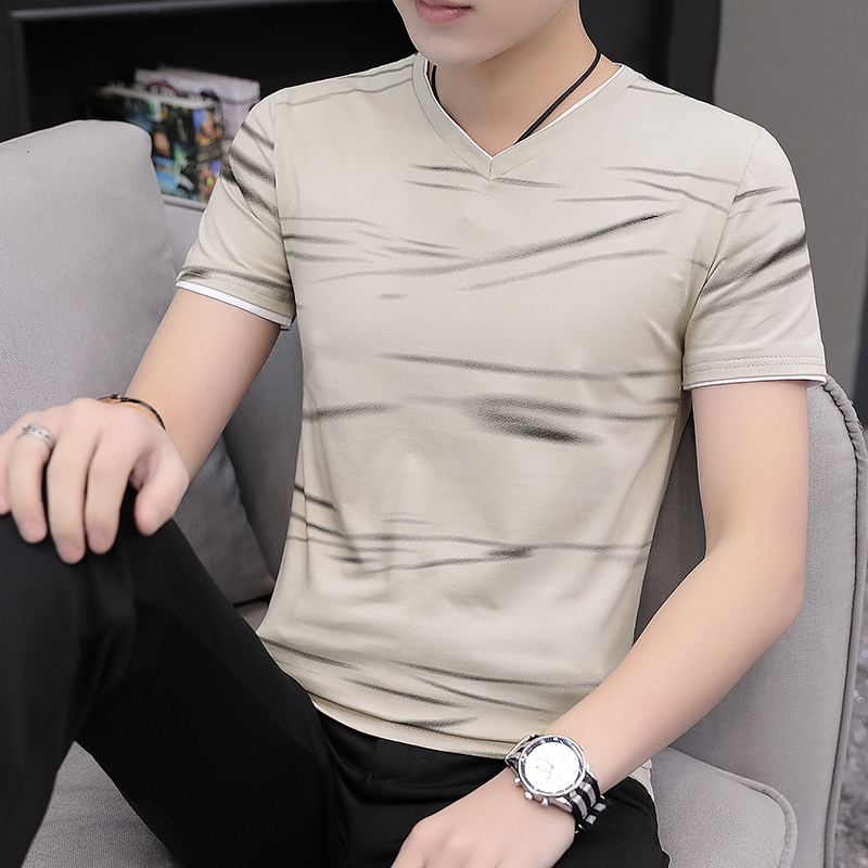 冰感修身 2025夏季 青年上衣服男士 t恤v领潮流棉感时尚 丅恤 冰丝短袖