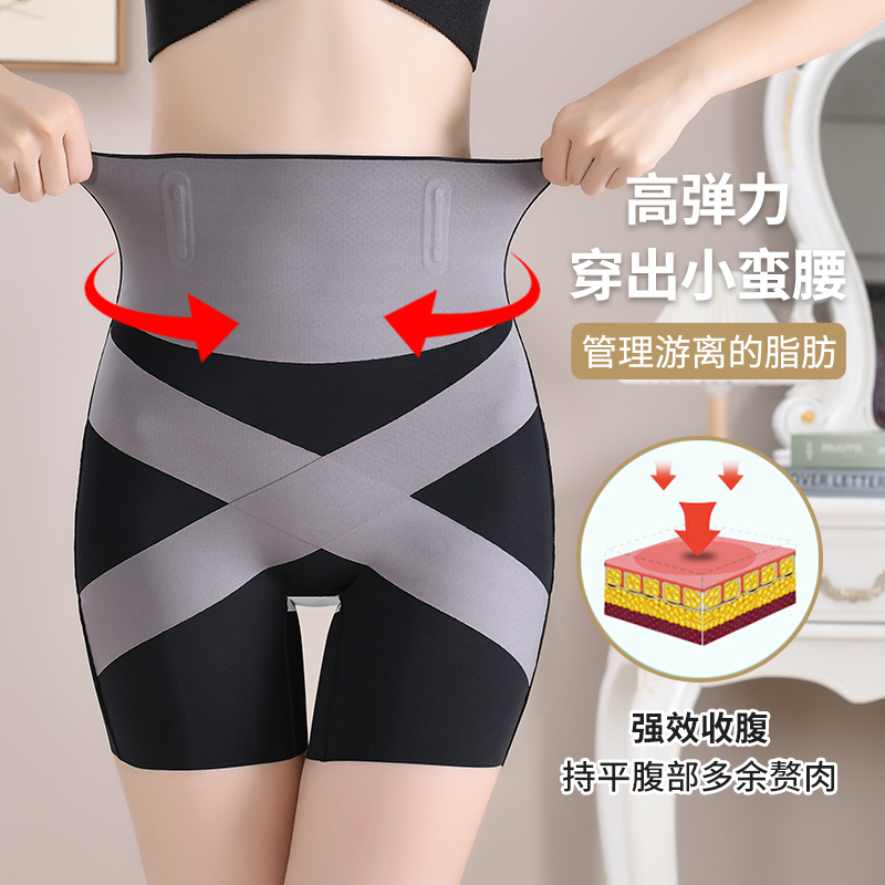 2025夏季 三合一平角裤 女防走光冰丝无痕收腹内裤 猫人粉底液安全裤