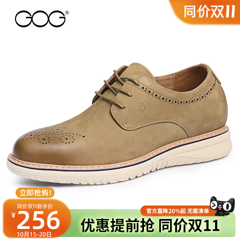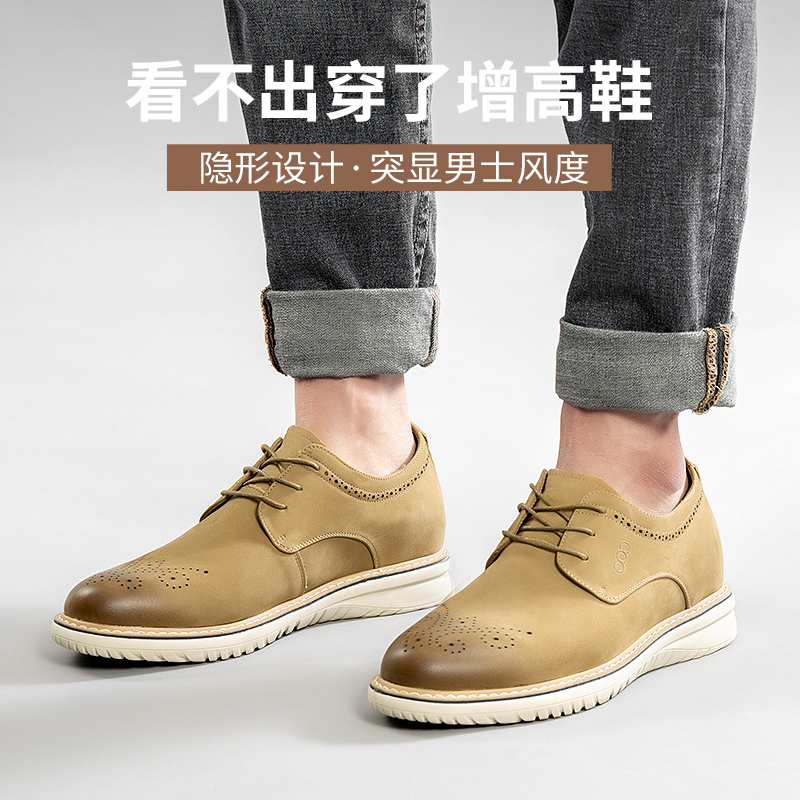 2025秋冬新款 男鞋 商务鞋 增高皮鞋 子 软底休闲系带圆头正装 奥康男鞋