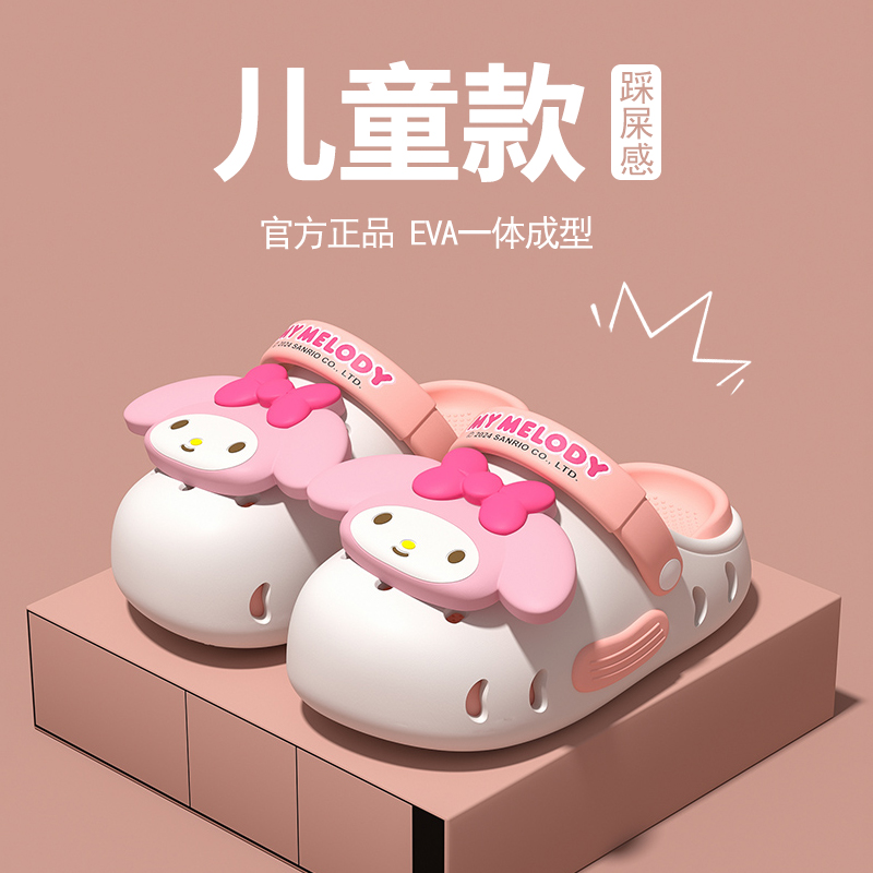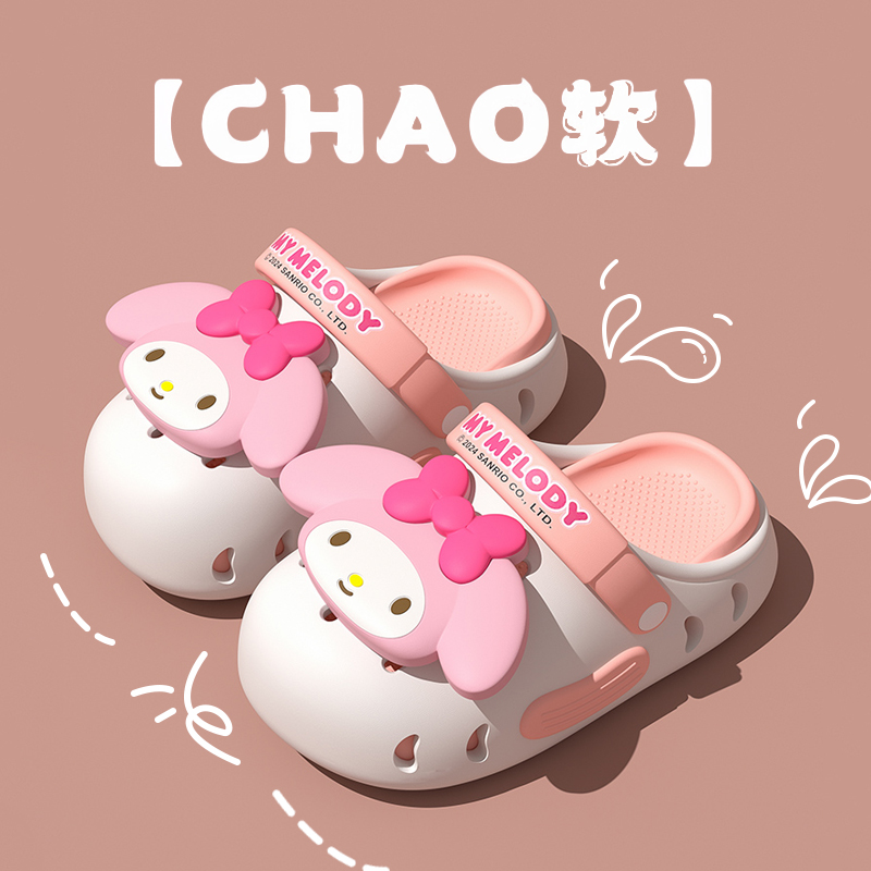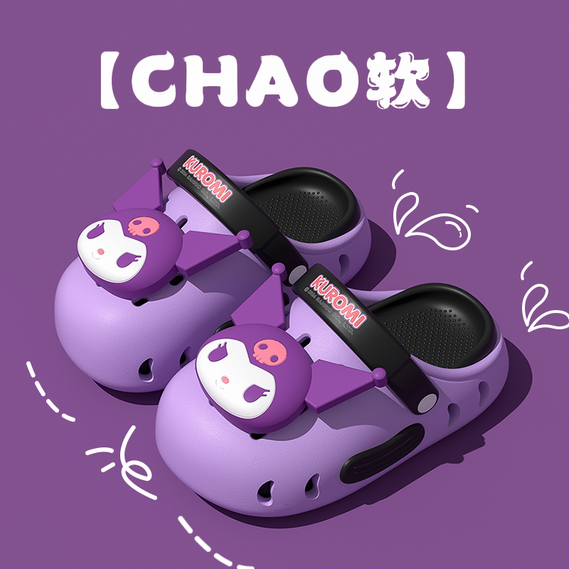 软底防滑洞洞鞋 儿童拖鞋 女孩外穿新款 库洛米女童包头凉拖鞋 夏季