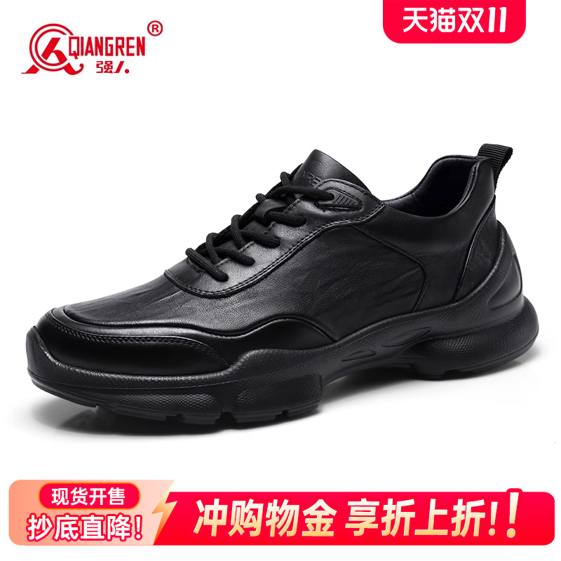真皮商务休闲鞋 强人3515男鞋 运动皮鞋 新款 厚底潮流高级感 2025秋季