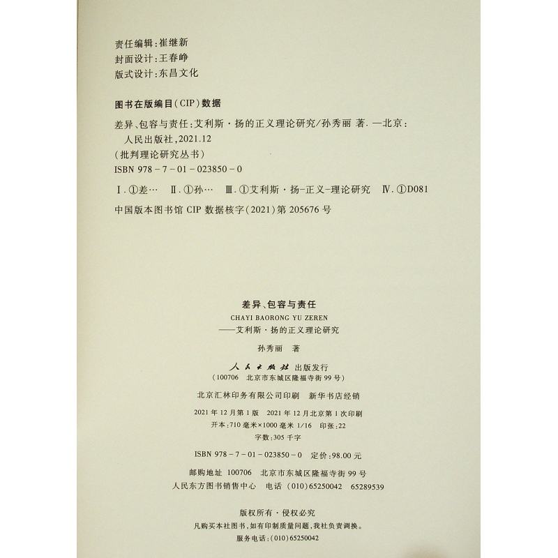 社新华书店正版 正义理论研究孙秀丽著政治理论人民出版 艾利斯.扬 差异.包容与责任