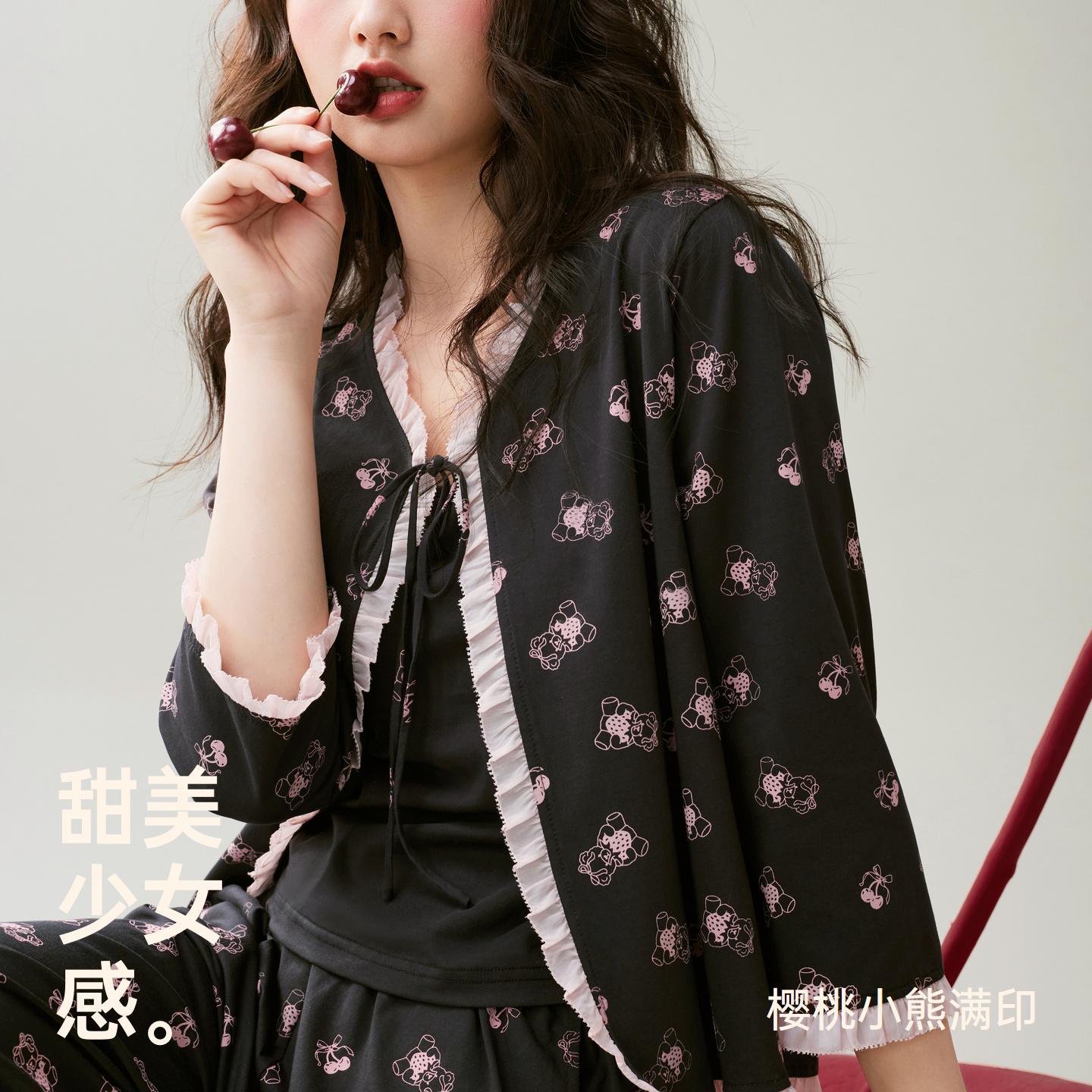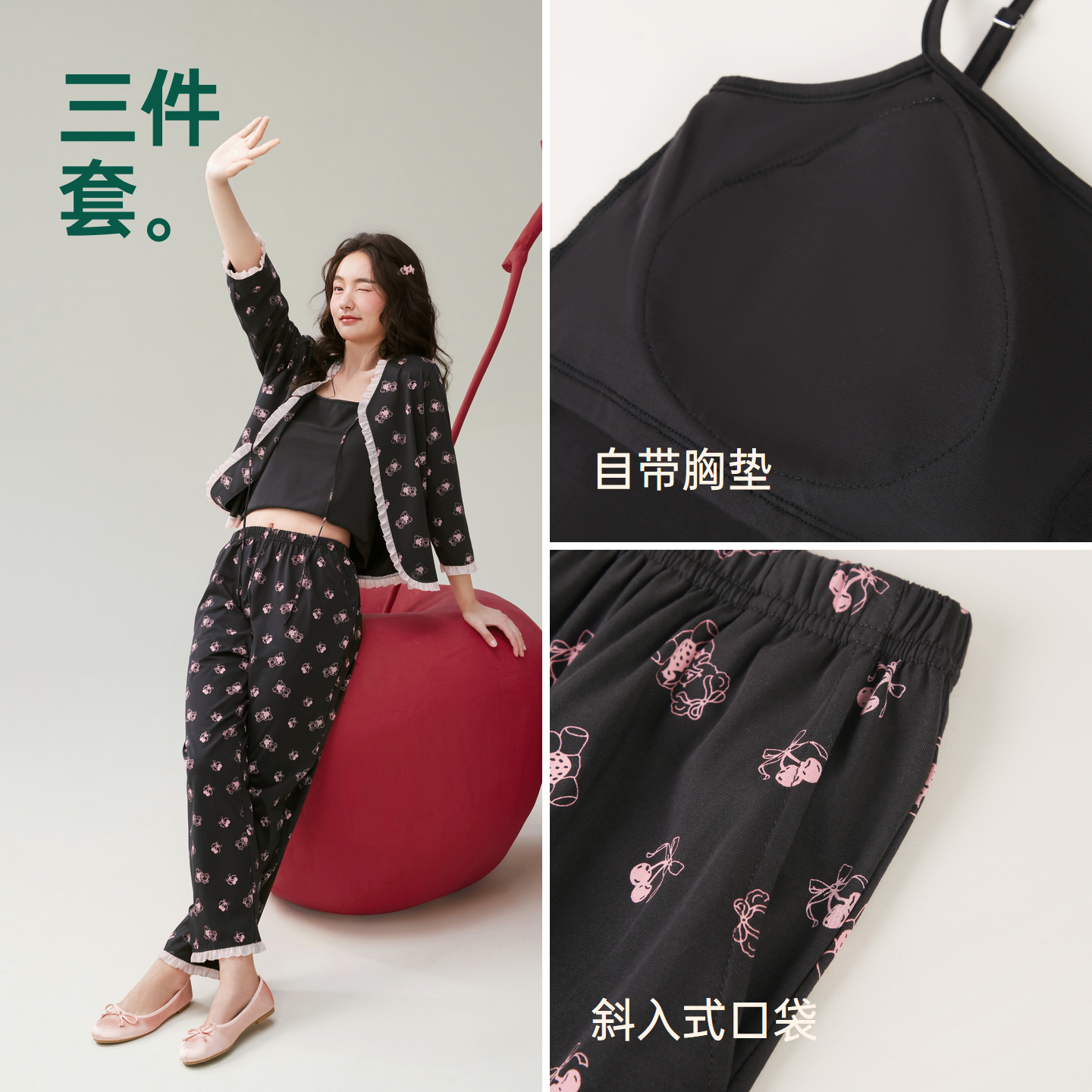 吊带三件套装 安之伴 带胸垫夏款 纯棉睡衣女春秋季 家居服 巨柔软