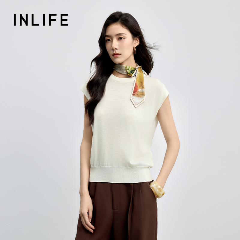 显瘦中领针织衫 半高领无袖 内搭坎肩修身 灰色西装 背心女羊毛打底衫