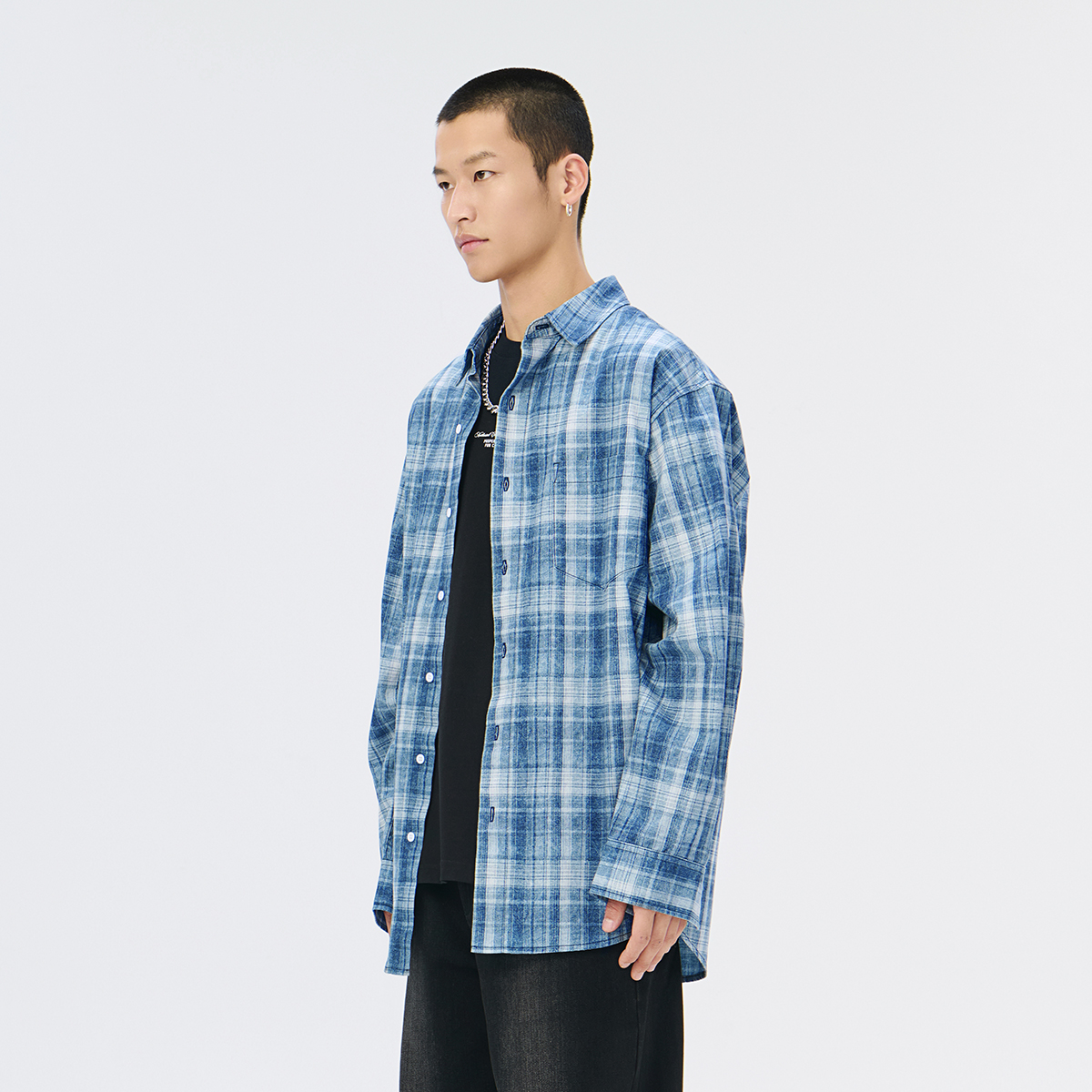GFX1E900571 24春新品 GXG男装 黑色激光烧花通勤牛仔衬衫