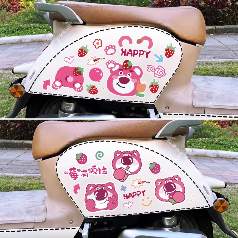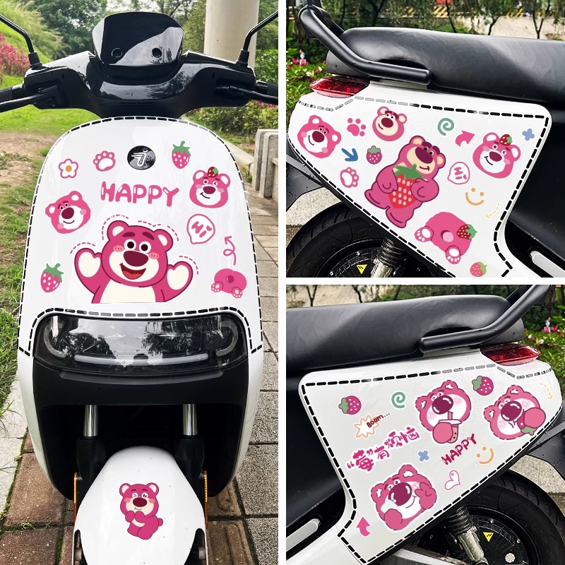 九号电动车贴纸防水草莓熊卡通装 饰摩托车雅迪爱玛晴天可爱无痕
