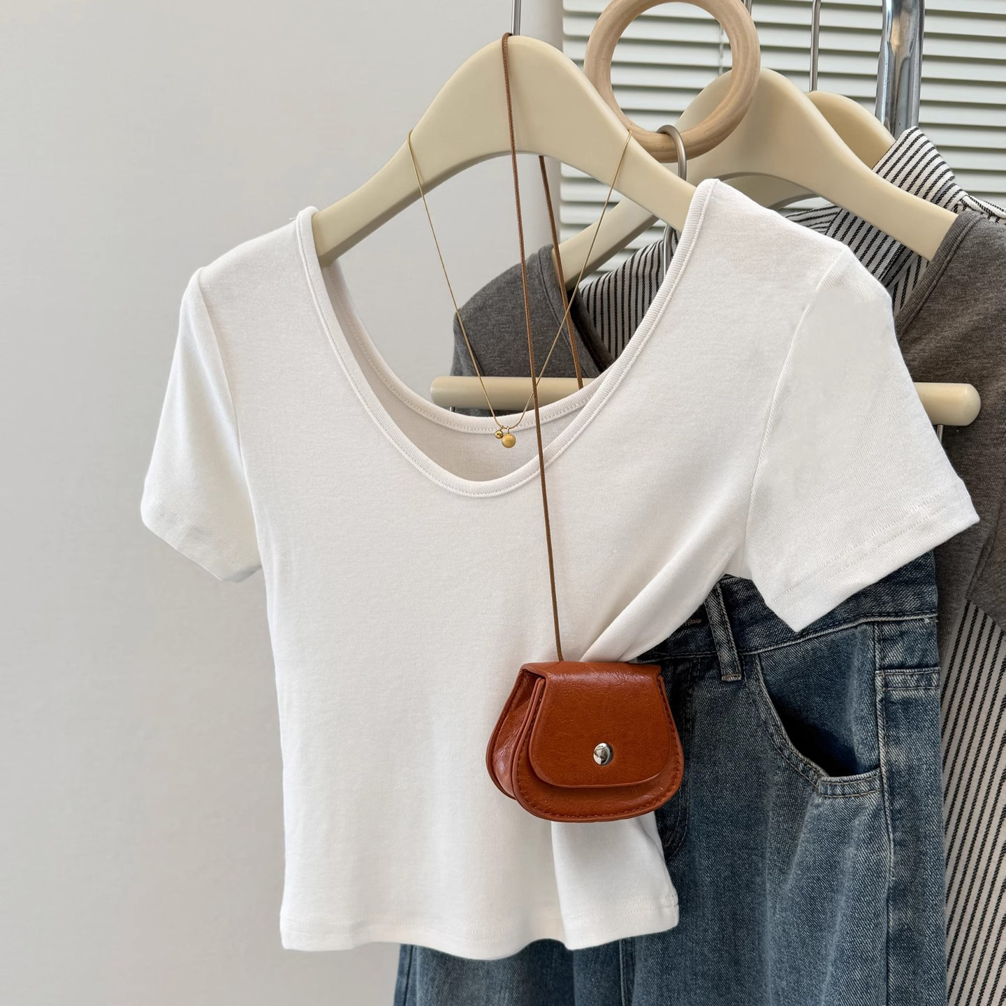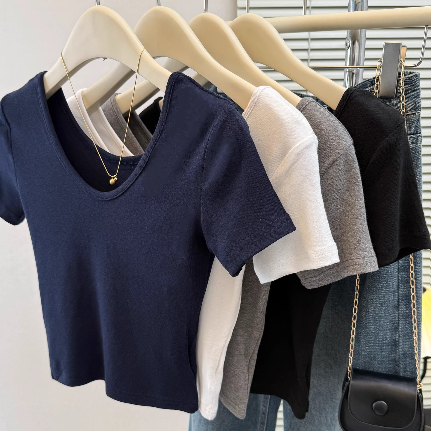 T恤女修身 V领正肩短袖 小个子短款 韩版 上衣潮 夏季 甜辣半袖 2025新款