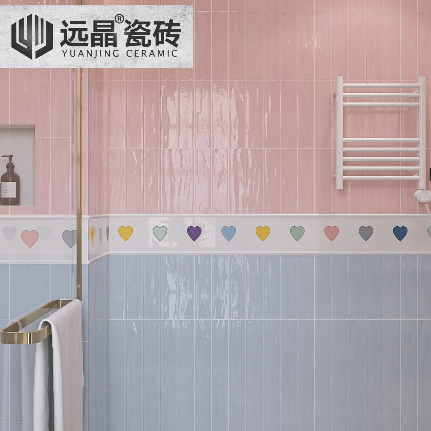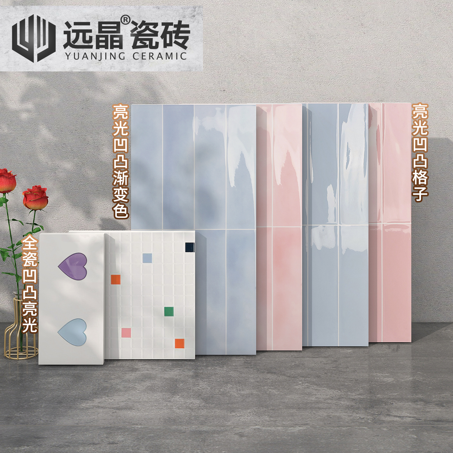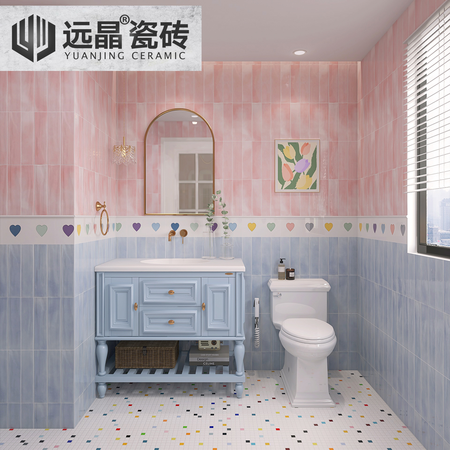 远晶 300x600多巴胺亮光小爱心珐琅砖格子瓷砖厨卫墙砖跳跳糖地砖