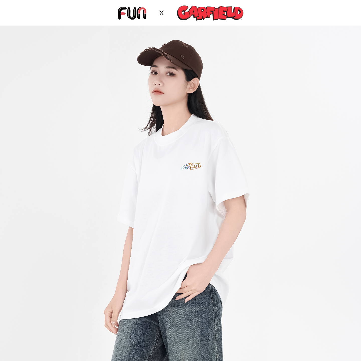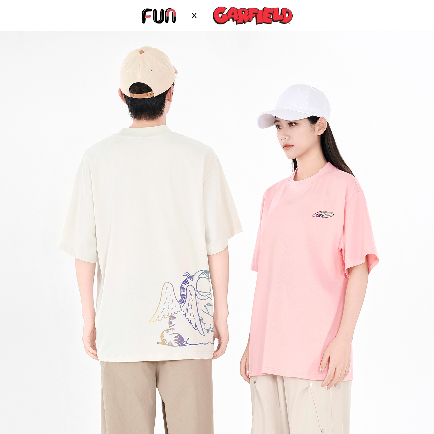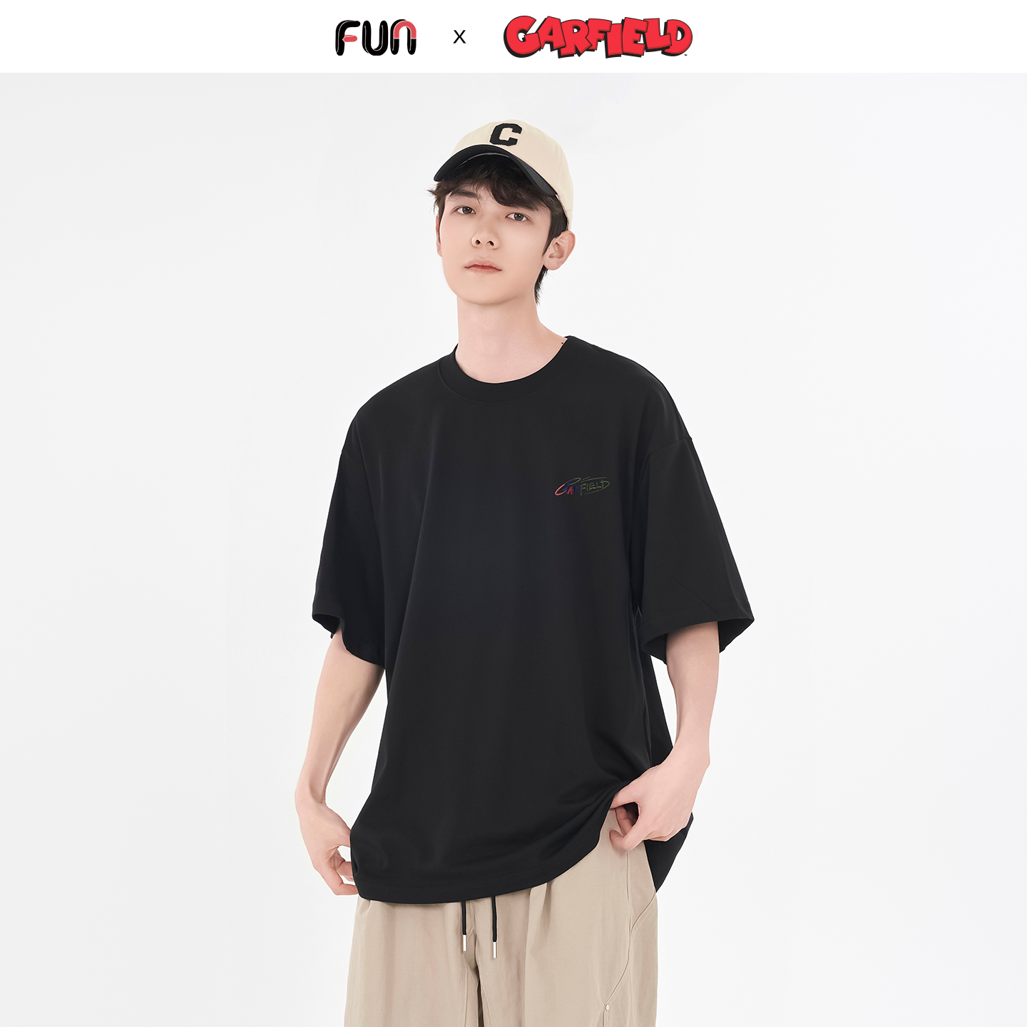 加菲猫联名渐变刺绣卡通印花圆领上衣 2025年夏季 Fun短袖 T恤情侣款