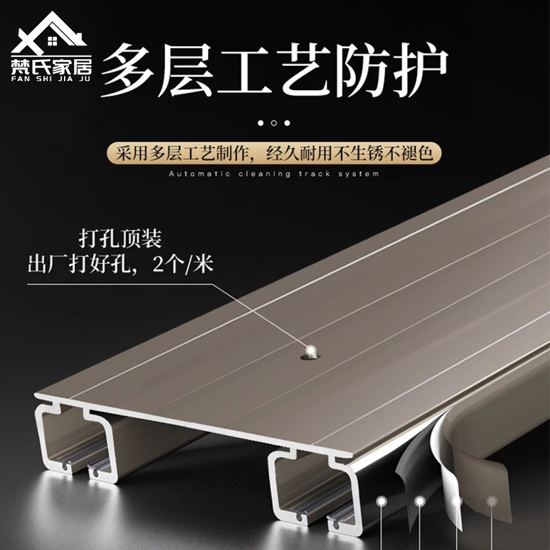 特厚窗帘轨道双轨静音滑道双轨一体双排轨道铝合金滑轨导轨顶装