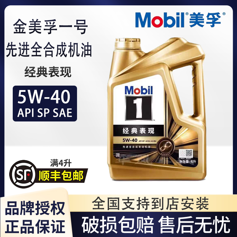 表现金美孚一号5W40 全合成机油1L4L Mobil美孚1号经典 正品