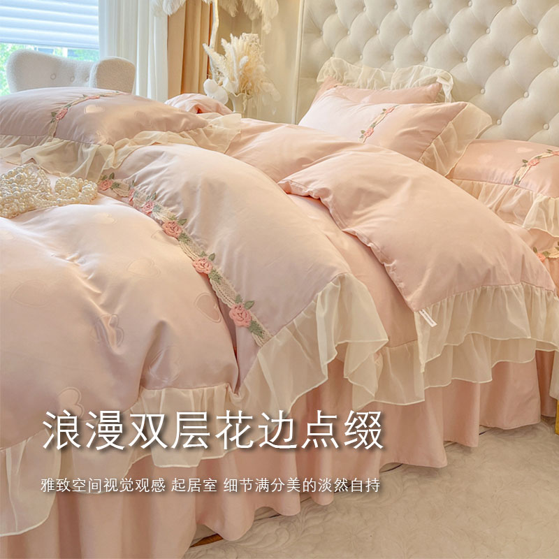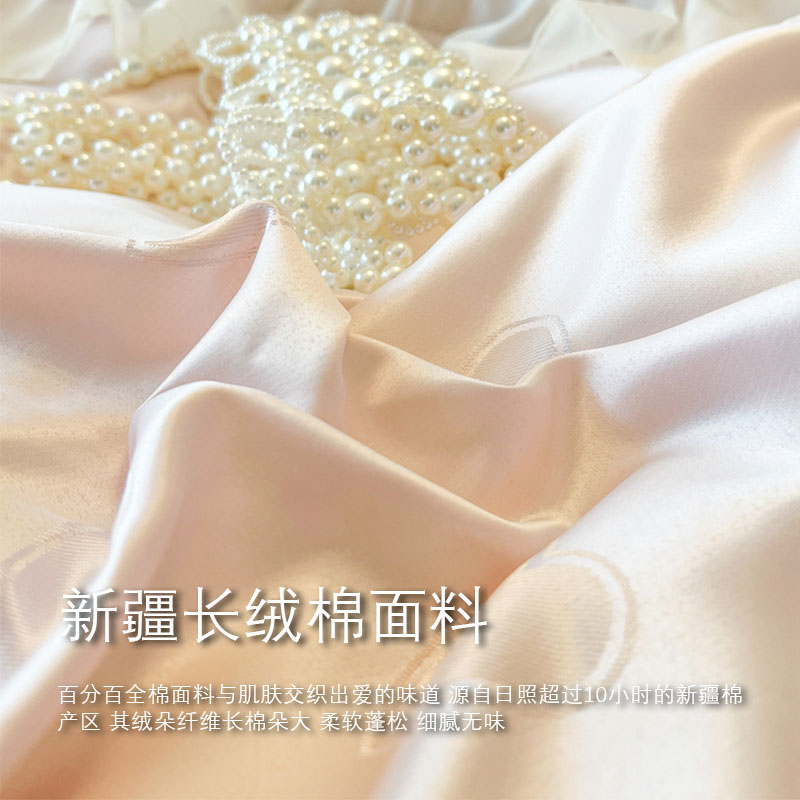 A类新疆长绒棉四件套贡缎提花法式 公主全棉纯棉蕾丝花边被套床裙