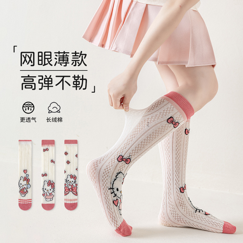 春夏新款 美乐蒂卡通女童小腿袜不勒透气袜 儿童网眼袜子批发