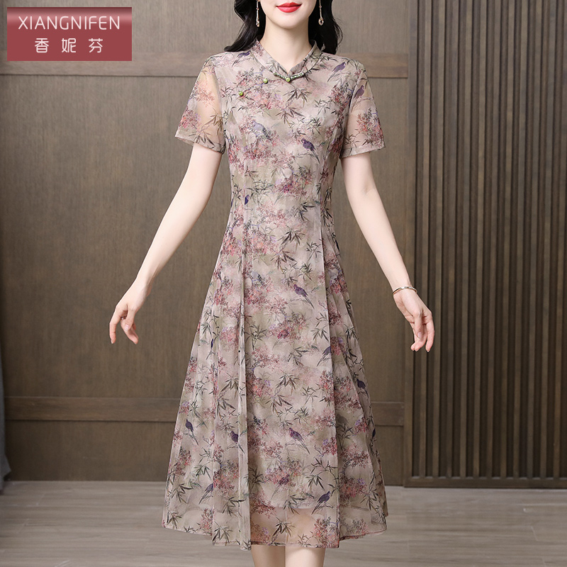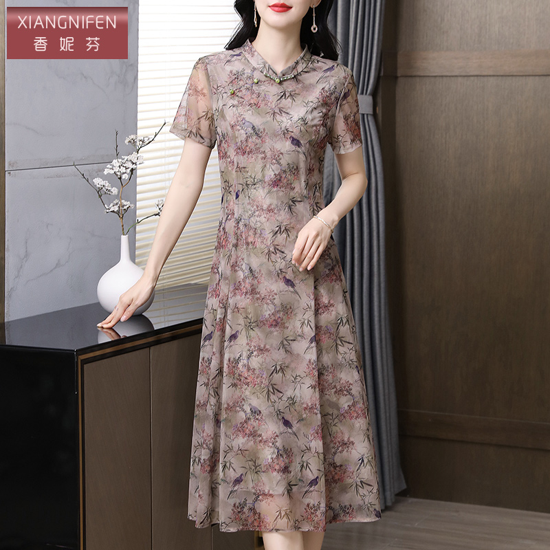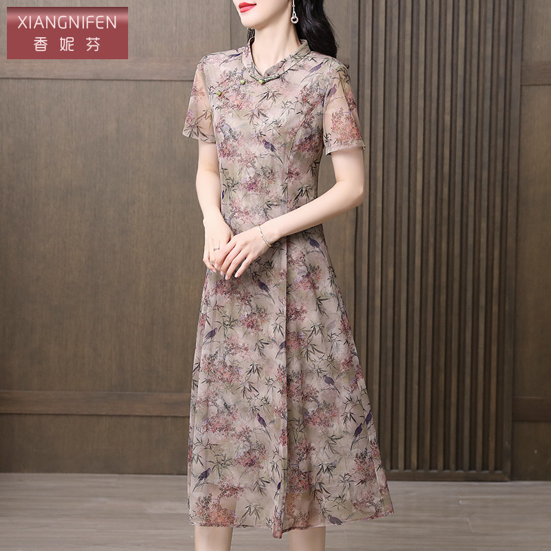 粉色旗袍连衣裙女25年夏国风气质长裙 微胖温柔新中式 XZY 欣争艳