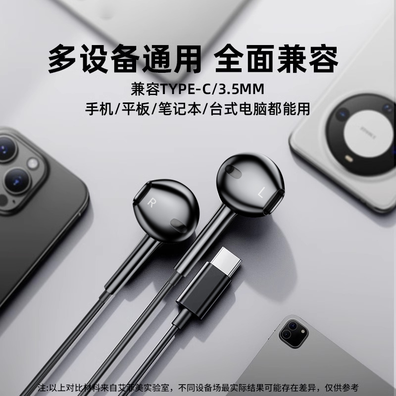 BONBELONG有线耳机typec接口圆孔入耳式 手机电脑适用于华为小米