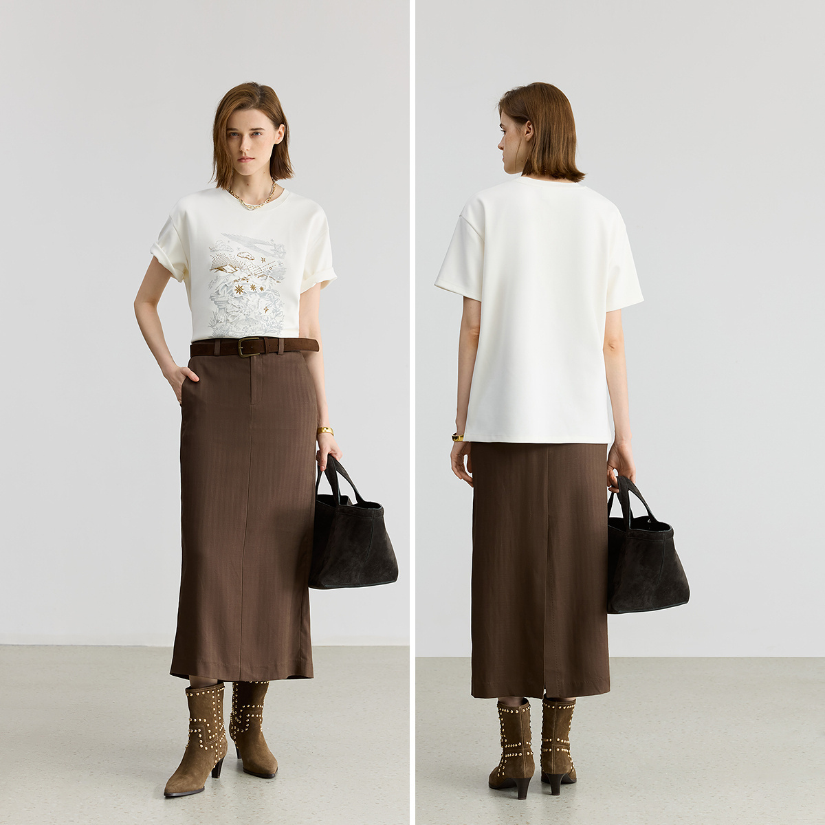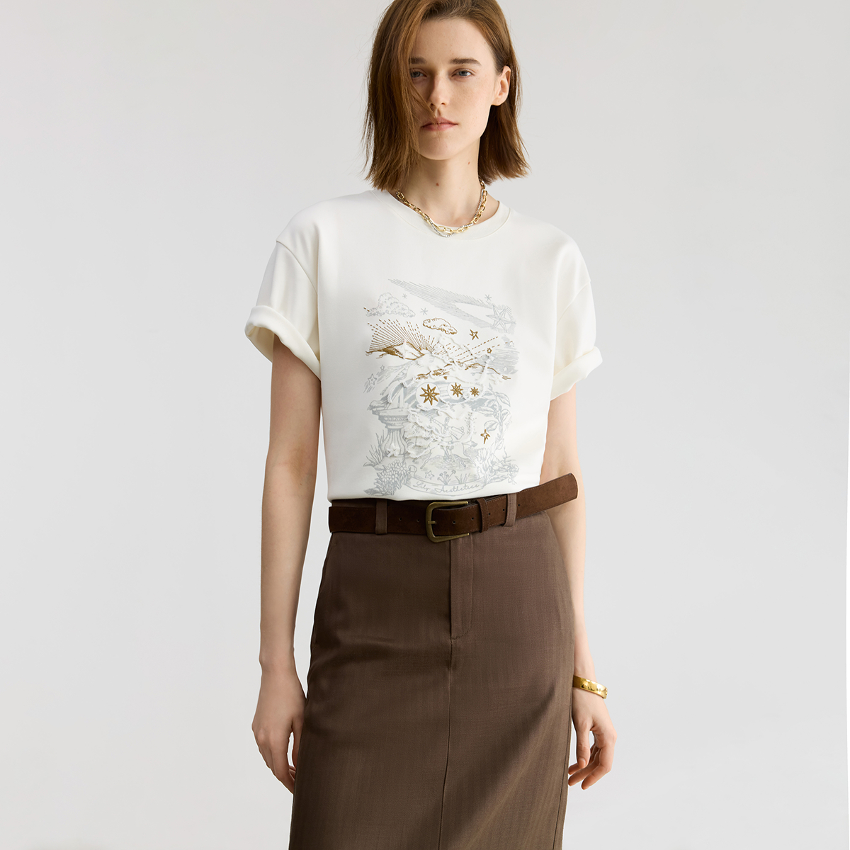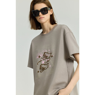 T恤 设计感撞色印花立体绣花落肩圆领休闲短袖 LILY2025秋新款 女装