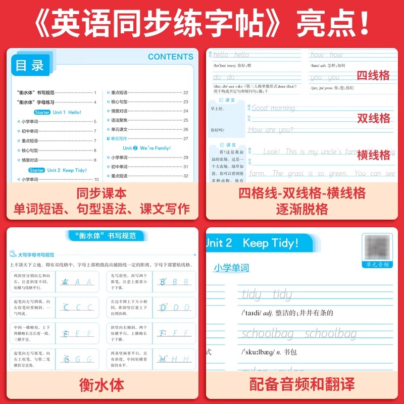 2026新版 一本初中同步练字帖语文英语衡水体字帖练字初中生七八年级上册字词句段单词短语写作字体学生专用作文范文优秀满分训练