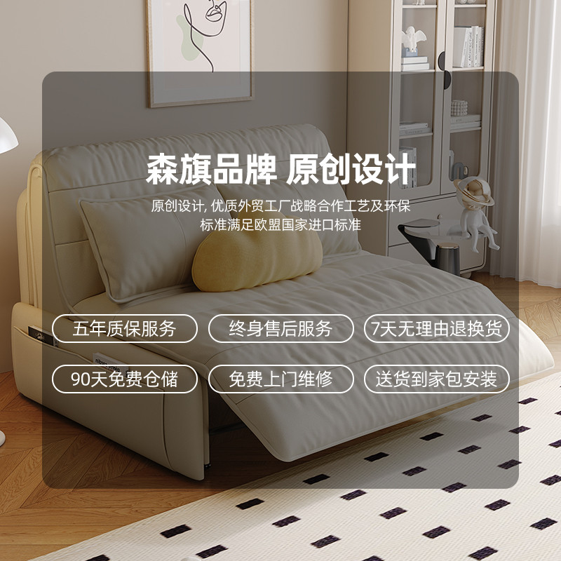 森旗智能电动沙发床折叠两用小户型真皮带储物多功能无线语音遥控
