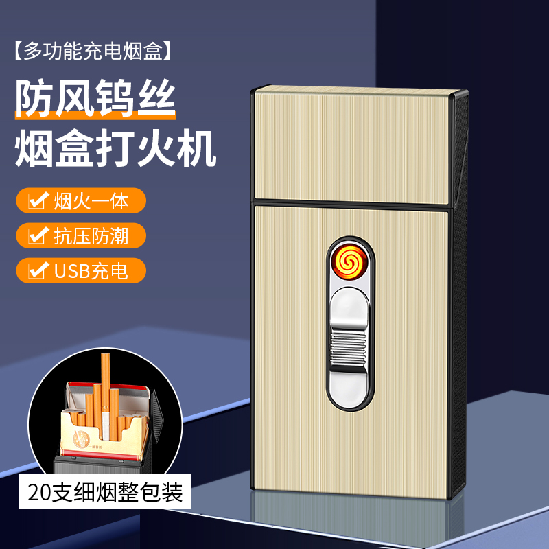 细支烟盒打火机一体20支装 超薄便携男防潮定制铝合金高档金属烟壳