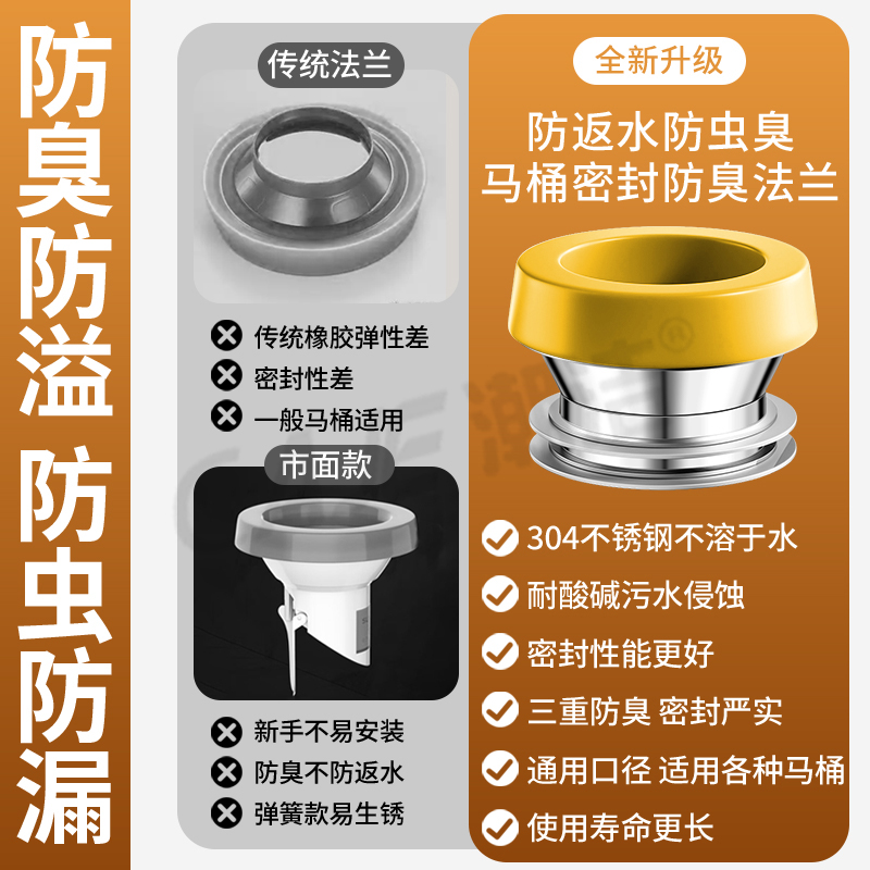 马桶法兰密封圈304不锈钢防臭防漏水垫圈一体通用坐便器配件大全